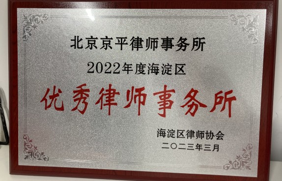 北京京平律師事務(wù)所榮獲2022年度海淀區(qū)“優(yōu)秀律師事務(wù)所”稱號(hào)